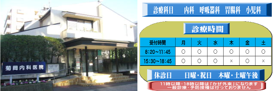 午前11時以降・午後6時以降の受診となります(予約はいりません) (午前11時前・午後6時前には院内への立ち入りはできません)